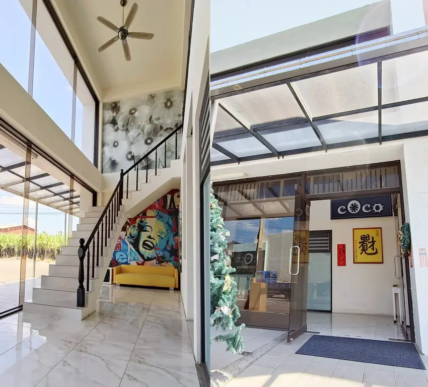 為二層式建築緊鄰餐廳與平面停車場,平價/舒適/有免費且寬敞的停車空間(24H自由出入)。
