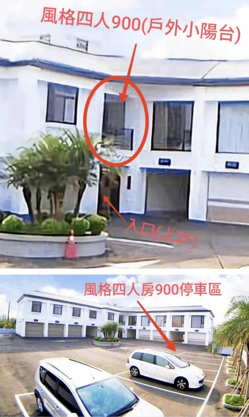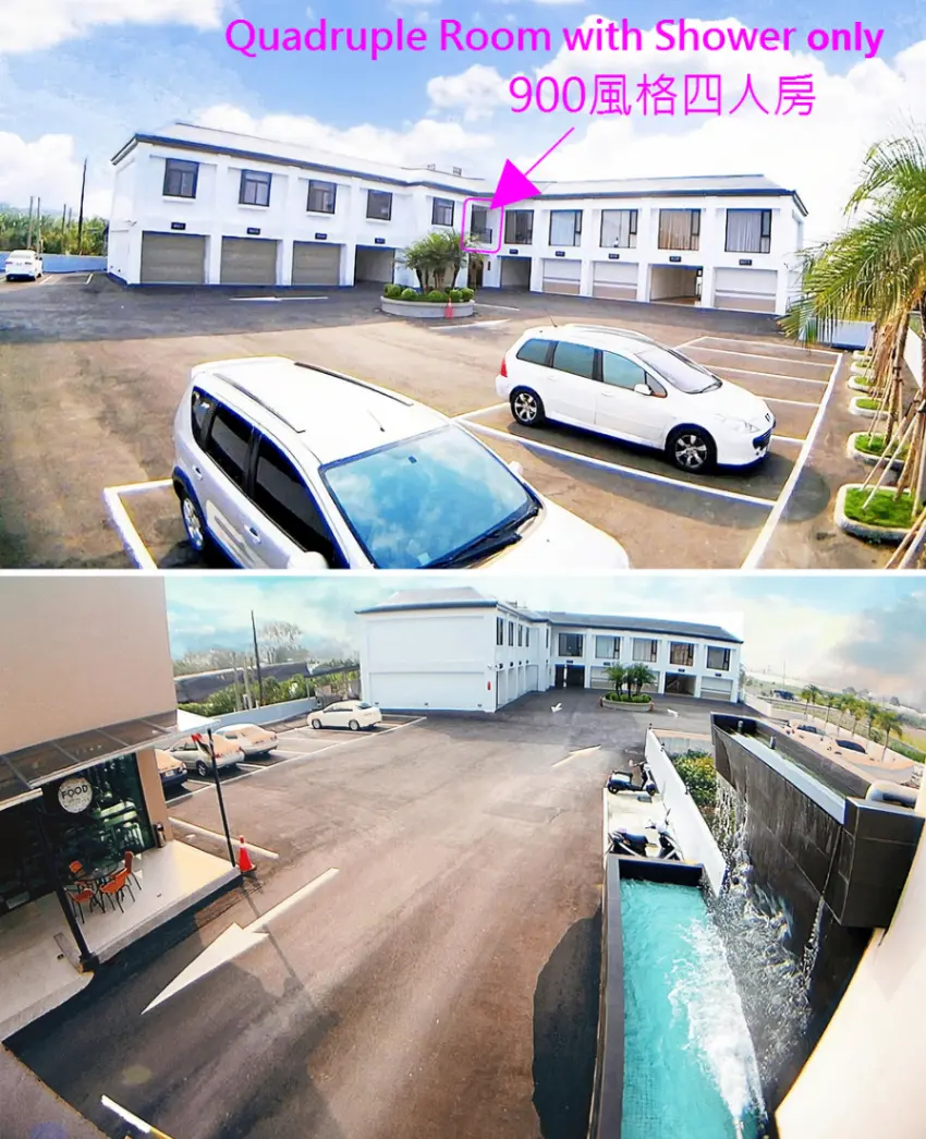 為二層式建築緊鄰餐廳與平面停車場,平價/舒適/有免費且寬敞的停車空間(24H自由出入)。